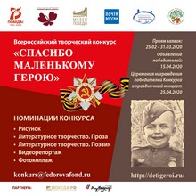 Подведены итоги Всероссийского творческого конкурса «Спасибо маленькому герою», посвященного 75-летию Великой Победы! Фонд Оксаны Федоровой «Спешите делать добро!» проводил этот конкурс уже в 3-й раз. Главная его цель - познакомить подрастающее поколение с именами их сверстников - маленьких героев самой страшной войны за всю историю человечества.
