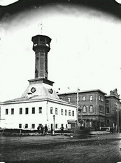 Водяной вопрос: На случай пожара имеются наполненные водой 1 бак (30 бочек) в нагорном резерве, 2 бака по 30 бочек в заречной части, и 1 бак емкостью 800 ведер к середине мая будет установлен и наполнен водой по Александровскому переулку за каменным мостиком. Число этих баков далеко недостаточно, по городу необходимо расставлять в разных местах еще 5 баков деревянных или железных, но тех или других достать негде, и поэтому в срочном порядке следовало бы дать наряд на изготовление 5 деревянных баков.