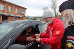 Участники мероприятия поздравили водителей с наступающим праздником и вручили им георгиевские ленточки - символ Победы.