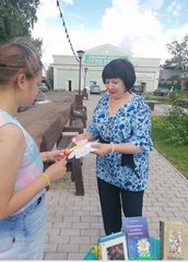 Например, сотрудники городской библиотеки вышли в сквер им. Кытманова с акцией «Ромашка счастья». Прохожим дарили символ праздника - букеты ромашек.