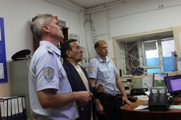 При посещении дежурной части Валерий Васильев уделил внимание наличию камер видеонаблюдения и обсудил с сотрудниками количество суточных регистраций и действия при реагировании на поступающие звонки и обращения граждан. При проверке ИВС общественник отметил наличие стенда с доступной информацией, необходимой для граждан, находящихся под стражей, техническое оснащение помещения, соответствие условий содержания изолятора санитарным нормам, а также организацию охраны, питание задержанных и наличие нужных медикаментов. В подразделении участковых уполномоченных полиции и по делам несовершеннолетних Валерий Васильев пообщался с сотрудниками и обсудил проводимую работу с гражданами.