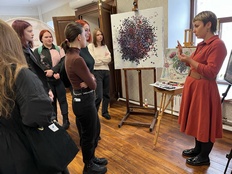 Каждый желающий задавал мастерам интересующие вопросы. Евгения Аблязова поделилась впечатлениями и опытом творческой деятельности, и рассказала, где найти вдохновение и как воспитать в себе настоящего художника.