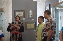На выставке можно увидеть косторезные работы северных мастеров, собрание национальных костюмов, представленных Таймырским Домом народного творчества и экспонатами Енисейского краеведческого архитектурного музея заповедника.