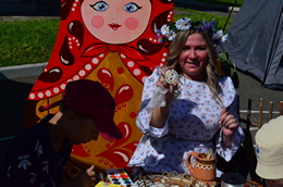 Рядом были площадки от структуры образования города и Центра Детского творчества, УПК, художественной школы. Здесь было столько мастер - классов, что, если бы вы приняли участие в каждом, то не смогли бы посетить все площадки Ярмарки. Можно было изготовить славянский оберег, расписать камень, сделать линогравюру, правильно сплести венок (и пойти в нём), раскрасить пуговицу, загадать желание и завязать на ней ленточку. Фотографироваться в тантамаресках - матрёшках успевали дети и их родители, бабушки и дедушки. Как интересно было сесть за ретро - парту и чернилами вывести своё имя или написать целое предложение. Отдельный концерт проходил у детских площадок, где выступали юные таланты нашего города.