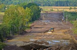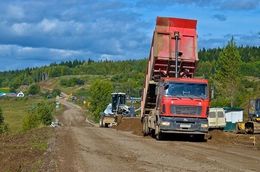 На первом этапе планируется отремонтировать 15 километров автотрассы. Сейчас здесь работает тяжёлая техника: бульдозеры и катки утрамбовывают земельное полотно, экскаваторы загружают огромные самосвалы, а грейдеры выравнивают привезённые ими кучи гравия.