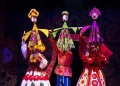 Под аккомпанемент народных мелодий дети и взрослые окунутся в деревенскую жизнь. На сцене развернется настоящая русская ярмарка с цыганами, медведями, ожившими сказочными и былинными героями и, конечно же, Петрушкой - любимцем публики.