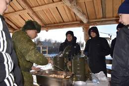 После торжественной церемонии ребят пригласили посетить выставку оружия, а чуть позже - отведать настоящей солдатской каши с горячим чаем в «Партизанской деревне».