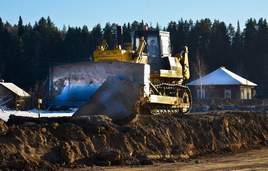 Часть запланированных работ - понижение горы возле деревни Каменск. Возвышенность состоит из очень твёрдого скальника, поэтому её срезают с помощью взрывных работ. Весь грунт идёт на отсыпку дорожного полотна. С этой горы уже вывезли около 50 тысяч кубов грунта, а предстоит ещё вывезти в шесть раз больше!