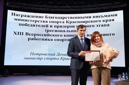Награду, - благодарственное письмо, победительнице вручал министр спорта Денис Петровский на краевом семинаре-совещании работников спорта.