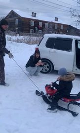 Так как лично Дмитрий Вадимович приехать не смог, снегокат привезли вчера его сотрудники и попросили спрятать до сегодняшнего дня. Министр хотел вручить его сам, хоть и онлайн. И вот он, тот самый долгожданный момент. «Большое спасибо за сбывшуюся мечту!?»