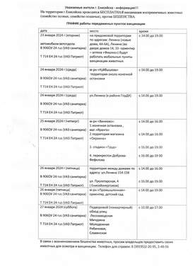 Знакомьтесь с графиком вакцинации. Телефон для справок: 8 /39195/ 22095, 24806.