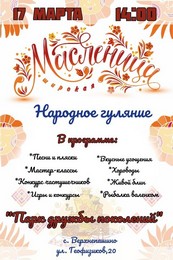 17 марта 2024 года в 14:00 село Верхнепашино приглашают на Масленичное гуляние по адресу: с. Верхнепашино, ул. Геофизиков, 20.