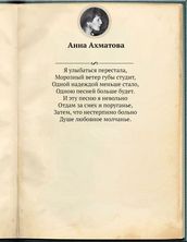 Свой первый сборник стихотворений Анна Ахматова опубликовала в 1912 году. В 1914 году в свет вышел второй сборник «Четки», который закрепил мнение об истинном поэтическом таланте Анны Ахматовой. В 1917 году появился следующий сборник под названием «Белая стая», в 1921 году - «Подорожник», а в 1922 году - известный сборник «MCMXXI», который отражал все нотки чувств и скорби Анны Андреевны, связанные с расстрелом ее супруга Н. С. Гумилева.