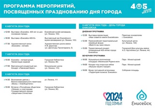Не забывайте, что Енисейский архитектурный музей - заповедник начнёт праздничные мероприятия ко Дню города 06 августа 2024 года. Знакомьтесь с анонсом мероприятий к празднованию 405-летия!