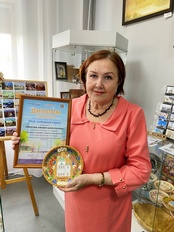 Альфия Шайхулловна - талантливый мастер, начала заниматься росписью в технике батик, затем стала расписывать дерево и бересту. Ее работы радуют жителей и гостей города, они всегда расскажут о каком-то уголке Енисейска, от мечети и храмов до куста рябинки или одуванчика на улицах нашего города.