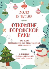 Уважаемые жители Енисейска и Енисейского района! Всех приглашаем на открытие главной новогодней ёлки 26 декабря 2024 года в 17:30!