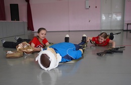 Игроки стреляли по мишеням, писали срочные новости в свой телеграмм канал, маршировали, оказывали первую помощь пострадавшему и решали тесты на знание БПЛА.