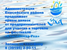 Уважаемые жители Енисейска и Енисейского района! В Енисейском районе полным ходом идёт подготовка самому большому районному празднику Енисейского района - Енисейская уха!