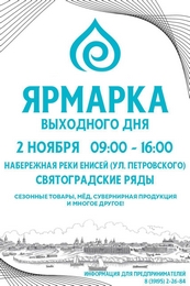 Мероприятие состоится 2 ноября 2025 года с 09:00 до 16:00 на Набережной реки Енисей (Святоградские ряды). Приглашаем всех желающих принять участие и реализовать свою продукцию гостям и жителям нашего города.