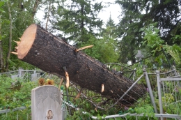 По чьей вине это произошло, кто спилил огромные ели и ёлки на территории Севастьяноского кладбища, под весом которых согнулись как тростинки металлические оградки и треснули гранитные памятники? Ответа на этот вопрос у нас нет...