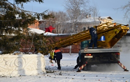 Сегодня на Детском стадионе города специальные службы сняли большую часть лампочек и осветительных трубок, забрали у главной ёлки Енисейска её нарядное платье, а потом и большая красная звезда с макушки лесной красавицы, отправилась на отдых, до следующих новогодних праздников.