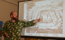 Выставка посвящена находкам, сделанным археологами страны на протяжении последних двух лет. Крошечная толика того, что извлекли из земли археологи сегодня была представлена на выставке. Оказалось, что в названии выставки - «на глубине четырёх веков» закралась неточность. Археологами были обнаружены «следы человека» живших на территории сегодняшнего Енисейска в 4 - 5 веках. Неоднократно звучали слова: «впервые в нашей стране», «беспрецедентные», «такого масштаба» и аналогичные высказывания. Их произносили сами археологи. Они познакомили посетителей выставки с теми артефактами, которые сегодня выставлены в музее на всеобщее обозрение. В короткой презентации представили необыкновенный погреб, который сохранился в таком хорошем состоянии около Богоявленского Собора только у нас в Енисейске. Археологи даже неоднократно обращались в Министерство культуры и туризма Красноярского края с просьбой создать музей археологии на базе обнаруженного складского помещения. Рассказали археологи и о куске пахотной земли, который был обнаружен около дома купца Баландина. В целом открытие выставки получилось очень насыщенное, интересное и... требующее продолжения.