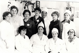 Валентина Николаевна Марченко более 40 лет проработала лаборантом в клинической лаборатории Енисейской ЦРБ. Узнали? На фото - она в верхнем ряду в центре.