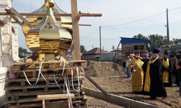 С самого утра на площадке работала тяжелая техника. Высота работ почти 40 метров, крану пришлось раскладывать дополнительную стрелу. Диаметр самого большого купола около двух метров. Для Енисейска это большое событие. Троицкая церковь - один из главных объектов большой реставрации к 400-летию города.