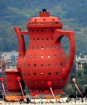 Памятников чайникам и самоварам великое множество по всему свету, но самый большой памятник заварному чайнику вошел в книгу рекордов Гиннеса. Уникальное здание в виде чайника высотой 73,8 метра и площадью более 5000 м2 стало музеем в провинции Мейтан в Китае. Этот небольшой город считается родоначальником китайского зеленого чая. Поэтому в нем создали музей чайной культуры.