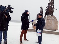 Главная страница / Новости / 2018 / Декабрь / Уважаемые жители Енисейска! «ВестиМобиль» снова прибыл в Енисейск! Малочисленные горожане пришли к памятнику основателям города!