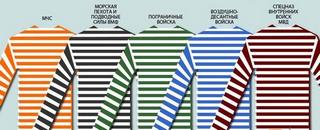 После революции 1917 года тельняшка также не потеряла своей популярности, носить ее по-прежнему было престижно. Зато в советское время, помимо бело-синих тельняшек, появились новые «цветовые решения». Поскольку моряки и речники носили тельняшки с темно-синими полосками, то, при создании формы для ВДВ в 1969 году, по аналогии с формой моряков, тельняшки вошли в состав формы и у десантников, но цвет полосок был изменен на небесно-голубой. В итоге, в 1990-х годах, тельняшки с полосками разных цветов были разработаны и официально «утверждены» и для других родов войск: черные (подводные силы ВМФ и морская пехота), зеленые (погранвойска), краповые (спецназ ВВ МВД), васильковые (спецназ ФСБ, Президентский полк), оранжевые (МЧС). Также морская тельняшка входит в комплект формы курсантов военно-морских и гражданских морских и речных учебных заведений.