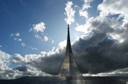 Взмывающая в небо ракета, оставляющая за собой шлейф дыма. Именно так выглядит композиция монумента «Покорителям космоса», высота которого составляет 107 метров. Открытие памятника было приурочено к очередной годовщине запуска первого искусственного спутника Земли, состоявшегося 4 октября 1957 года. Уже на следующий год был объявлен конкурс на монумент, в результате чего появилось около тысячи проектов, более 300 из которых были отобраны и представлены на выставке в Манеже.