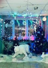 Когда мы обратились к организатору и главному инициатору новогоднего оформления и участия в конкурсе Юлии Ткачевой, то она рассказала нам, что «целый год я вынашивала идею с двумя медведями. А почему медведь? Не знаю! Очень захотелось северного Сияния и Медведя. Правда, в итоге - получился один».