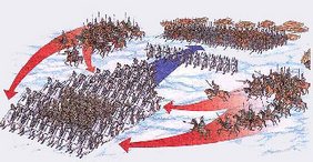 К началу 1242 года Александр дождался брата Андрея Ярославича с «низовыми» войсками Суздальского княжества. Когда «низовое» войско было еще на подходе, Александр с новгородскими силами выступил под Псков и окружил его. Орден не успел быстро собрать подкрепление и выслать к осажденным. Псков был взят, гарнизон перебит, а орденские наместники в оковах были отправлены в Новгород. Согласно сохранившимся летописям, Ледовое побоище началось при солнечном восходе у Воронея Камени на Узмени. Традиционная схема битвы выглядит следующим образом. Немецкая конная колонна атаковала пеший центр русского войска, нанесла ему большие потери, однако, была охвачена с флангов княжеской конницей и обратилась в бегство. На льду Чудского озера пало 400 немецких воинов, часть попала к русским в плен. Источники свидетельствуют, что пленные шли возле своих коней во время радостного въезда князя Александра в Псков. Эта битва, вместе с победами князя Александра над шведами (в июле 1240 года на Неве) и над литовцами (в 1245 году под Торопцем, у озера Жизца и близ Усвята), имела большое значение для Пскова и Новгорода, задержав напор трех серьезных врагов с запада - в то самое время, когда остальная Русь терпела большие потери от княжеских усобиц и последствий татарского завоевания. К тому же Ливонскому ордену был нанесен сокрушительный удар, и продвижение крестоносцев на Восток остановилось.