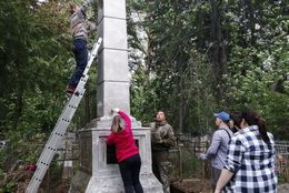 В 2011 году, в рамках реализации проекта «Светлая тень прошлого» на памятнике была установлена памятная табличка и произведены общие работы по благоустройству прилегающей территории. Но за время прошедшее с момента реализации этого проекта из-за воздействия природных факторов внешний вид монумента требовал проведения комплекса работ, которые могли бы обеспечить его сохранность и достойный облик. Вооружившись шпателями и кистями, в течение нескольких часов были произведены отделочные и лакокрасочные работы, а также приведена в порядок территория окружающая этот монумент.
